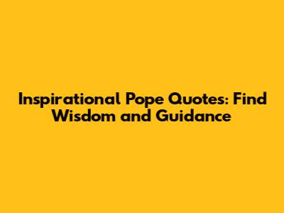 Inspirational Pope Quotes: Find Wisdom And Guidance