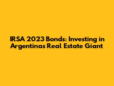 Hey guys! Thinking about dipping your toes into the world of Argentinian investments? Or maybe you're already a seasoned investor looking for the next big thing? Either way, let's talk about IRSA 2023 bonds. IRSA, which stands for Inversiones y Representaciones S.A., is a major player in Argentina's real estate sector. Understanding their bond offerings, specifically the ones maturing in 2023, can be a crucial step in making informed investment decisions. This article breaks down everything you need to know, from what obligaciones negociables are to the specifics of IRSA's bonds and the risks and rewards involved. So, grab a mate, settle in, and let's get started!