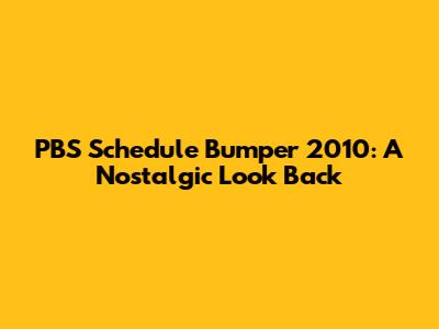 PBS Schedule Bumper 2010: A Nostalgic Look Back