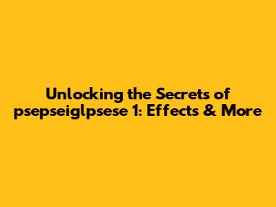 Unlocking The Secrets Of Psepseiglpsese 1: Effects & More